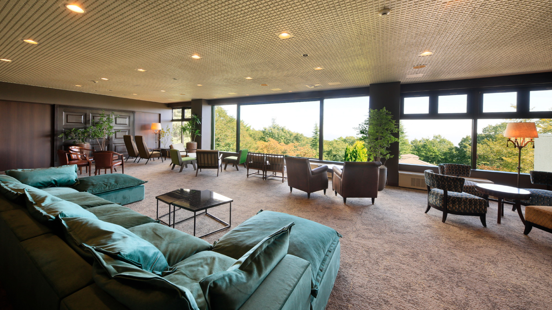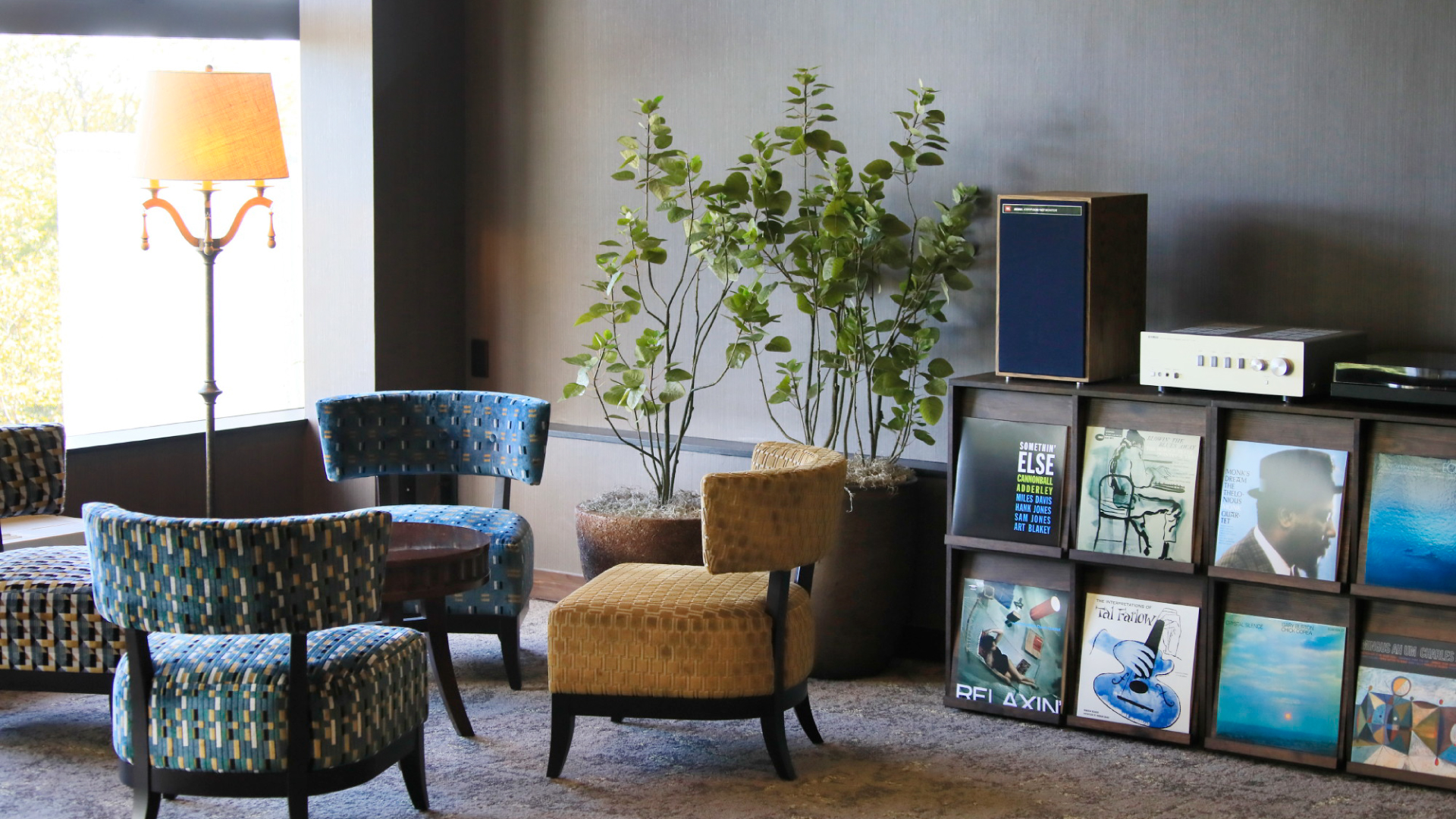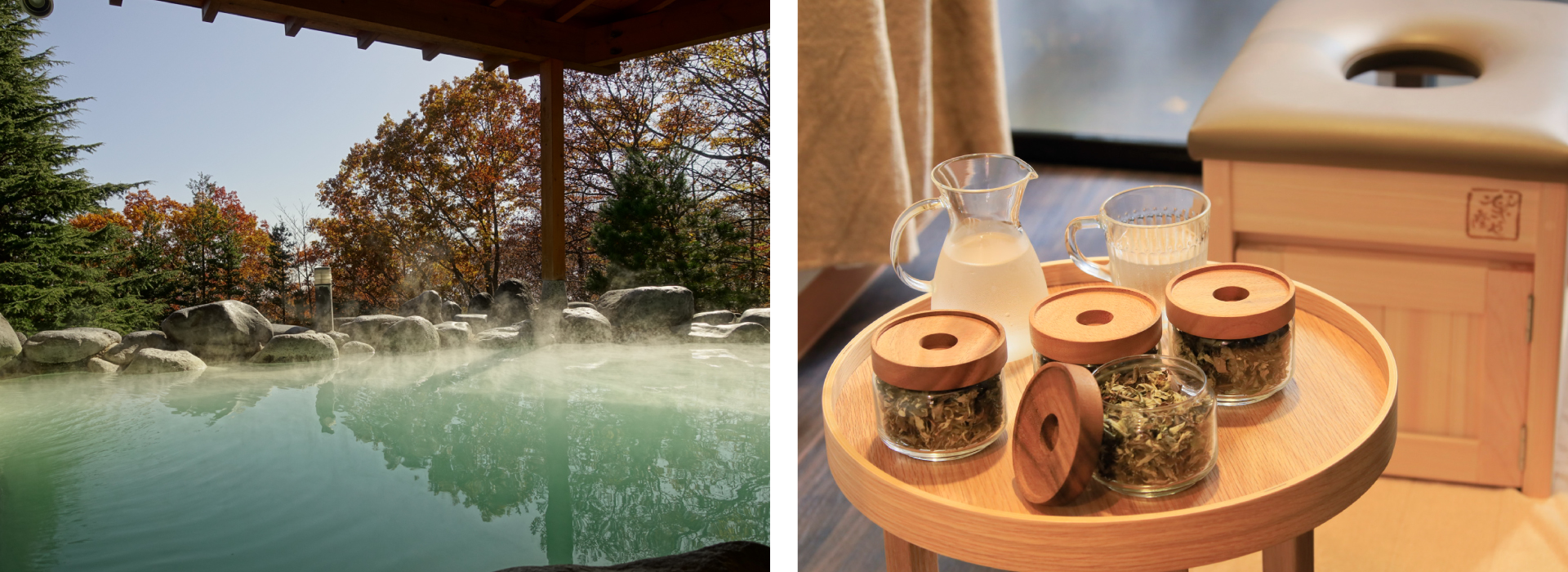 目の前にパノラマビューが広がるラウンジではレコードが流れ、ドリンクやフィンガーフードとともに寛ぎのひとときをお過ごしいただけます。BGMはラウンジ / レストラン、温浴セラピールームなど、空間に合わせたオリジナルの選曲で演出しました。