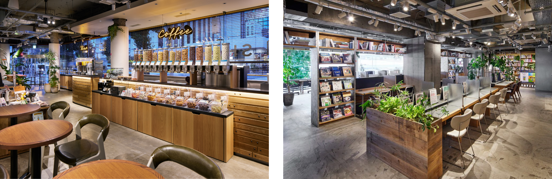 同店は、昨年、「シェアオフィス」の利便性と「ラウンジ」の居心地の良さを持ち合わせた「SHARE LOUNGE」とカフェを備えた書店として改装いたしましたが、リモートワークが広がる昨今の状況において、多くのお客様からSHARE LOUNGEの座席とオンラインミーティングブースの拡充を望む声をいただきました。そこで今回、全館SHARE LOUNGEとして生まれ変わり、座席数も160席に大幅拡大、オンラインミーティングブースも13席をご用意。