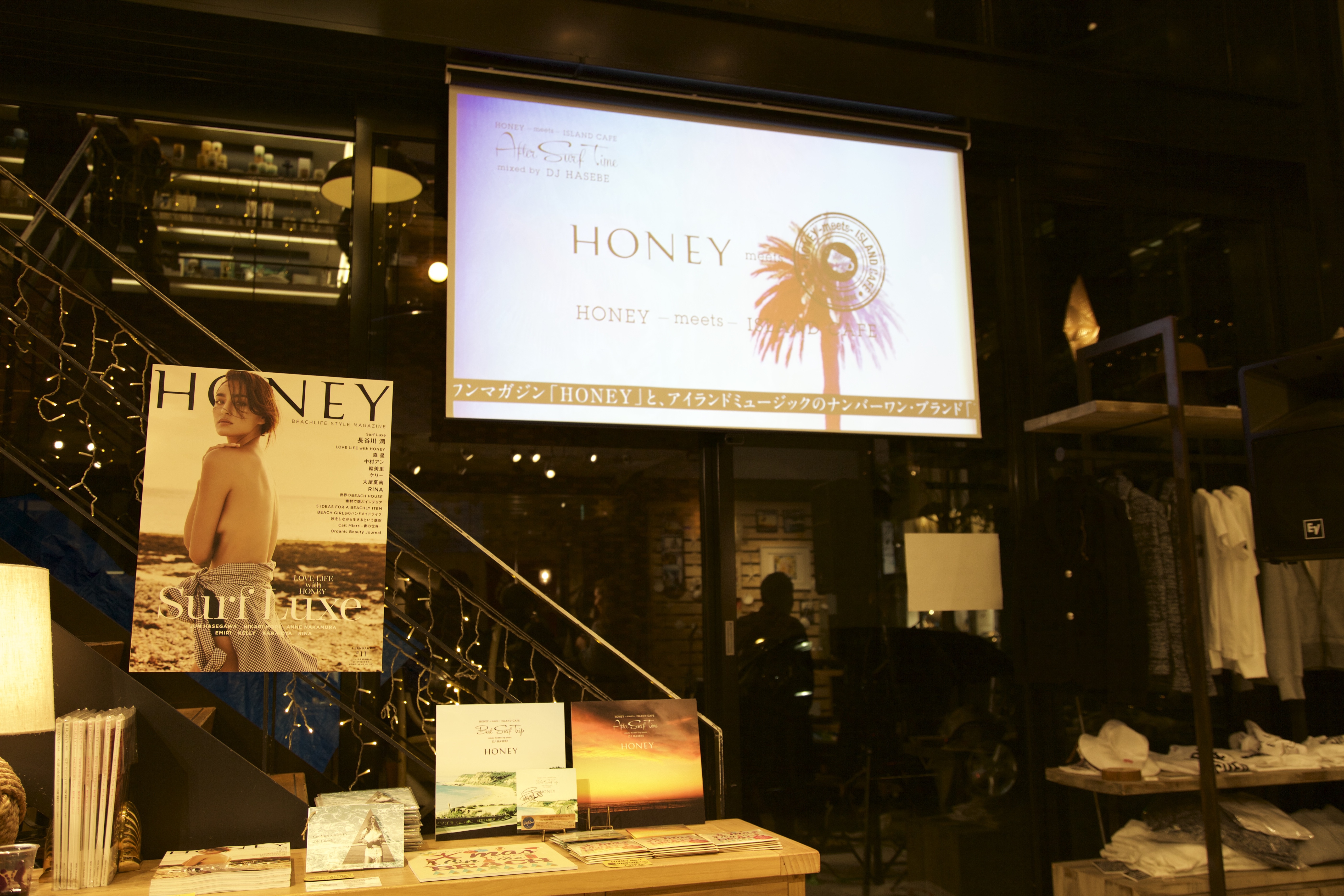アフターサーフのひと時にダウンテンポでメロウなSurf Music Mix CD「After Surf Time」、クリスマスカバーアルバム「X'mas on the BEACH」のCD発売を記念したリリースパーティーと、WTW毎年恒例のクリスマスパーティと大人気サーフファッション誌「HONEY」がコラボレーション、「HONEY x WTW Presents X'mas on the BEACH PARTY」がWTW青山店で行われました!