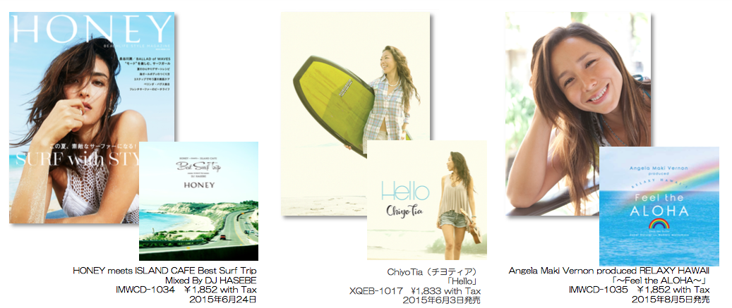 大人の女性のためのビーチライフ・スタイルを提案するナンバーワンマガジン「HONEY」と、アイランドミュージックのナンバーワン・ブランド「ISLAND CAFE」がコラボレーションしたノンストップ・カバー・アルバム「HONEY meets ISLAND CAFE 〜Best Surf Trip〜 mixed by DJ HASEBE」の発売を記念して、ChiyoTia インストアライブ&アンジェラ・磨紀・バーノン トークショーの開催が決定!