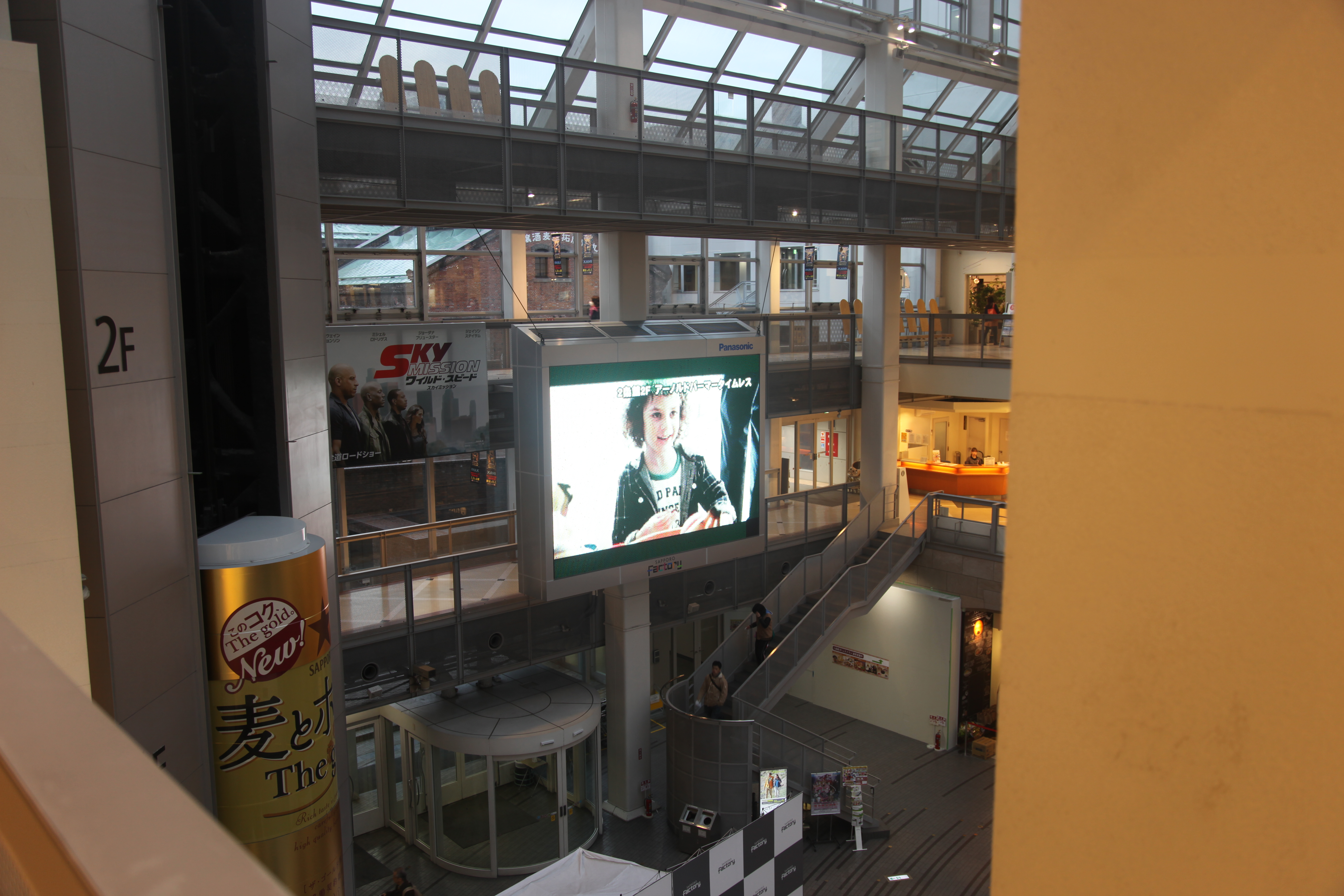 サッポロファクトリーのアトリウムヴィジョン「2015 SPRING」放映中の様子です。