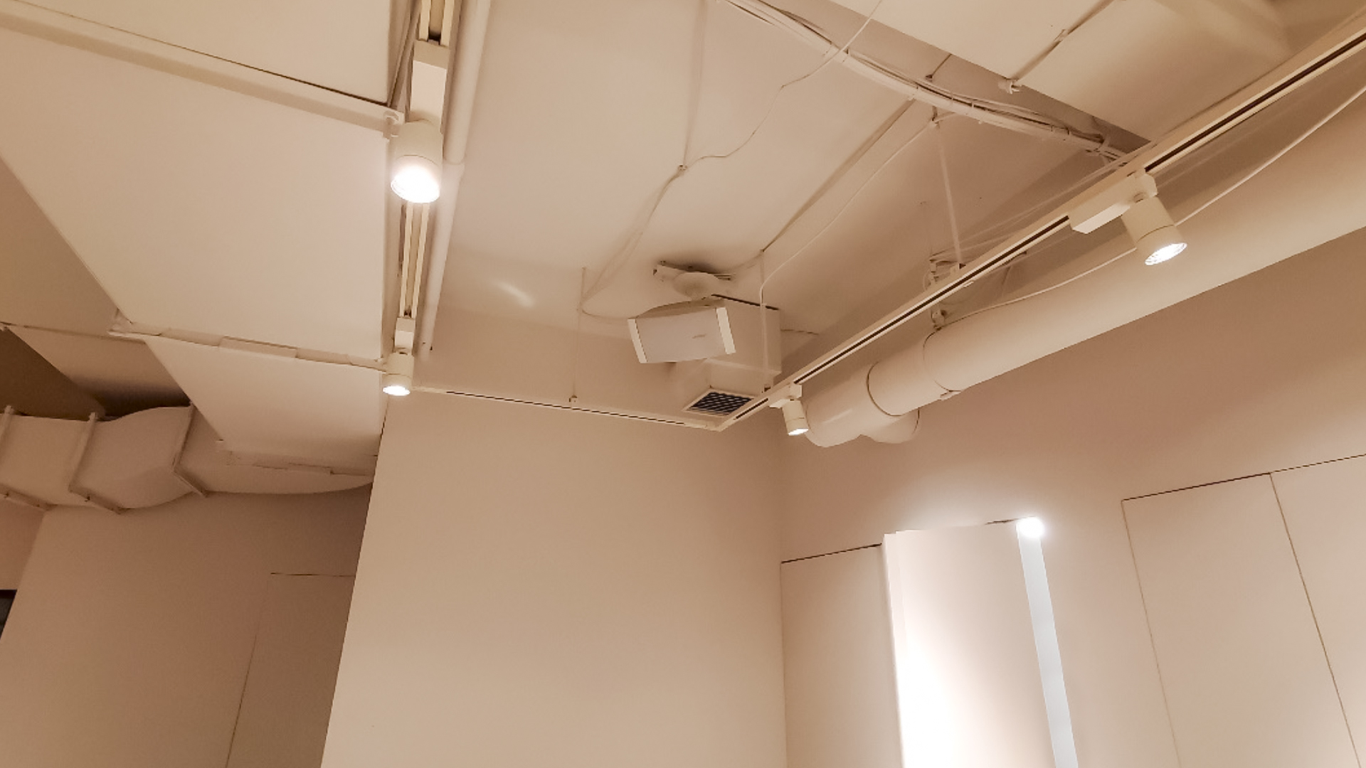 1階「PUBLIC HOUSE Yoyogi Uehara」、地下1階「おいしい未来研究所」共に既存天吊りスピーカーを再利用できるよう、スピーカーケーブル分岐作業を施し、各スピーカーのボリューム調整を可能とした音響システムを構築しました。「おいしい未来研究所」には各種イベントにも対応できるようDJミキサーなどの音響機材一式を導入。